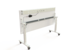 The square desk top with finish white melamine. The possibility of multiple desk top depths: The design can handle tops down to 60 cm. This edition is equipped with the 180 x 80 cm top. The frame, with its C-shape and recessed base, is created for open-plan offices with back-to-back placement.
