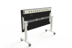 A symmetric powder coated frame with centered T-legs. The concept is original specifically developed for meeting/conference tables, but can also be used as multi-purpose tables, dining or for office work.